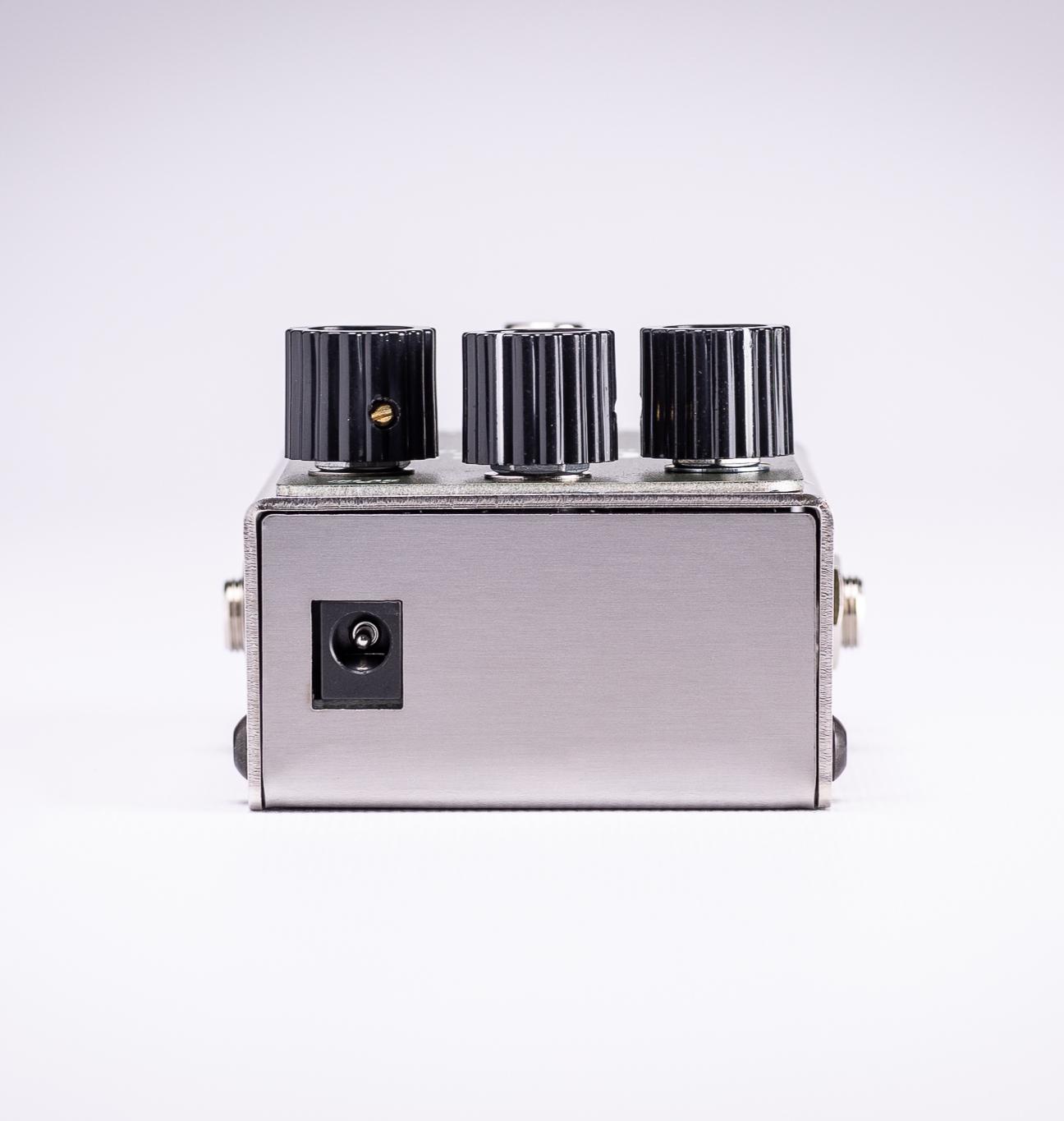 The Secret-1 can be powered by a high quality stabilized power supply or with a regular 9V battery. To replace it remove the four screws on the pedal’s side. The accepted supply voltages range from 9V DC to 24V DC, and higher voltages will result in more dynamics and harmonic complexity. The recommended voltage is 18V DC. The pedal has a standard tip negative connector (the same as used by Boss pedals).
