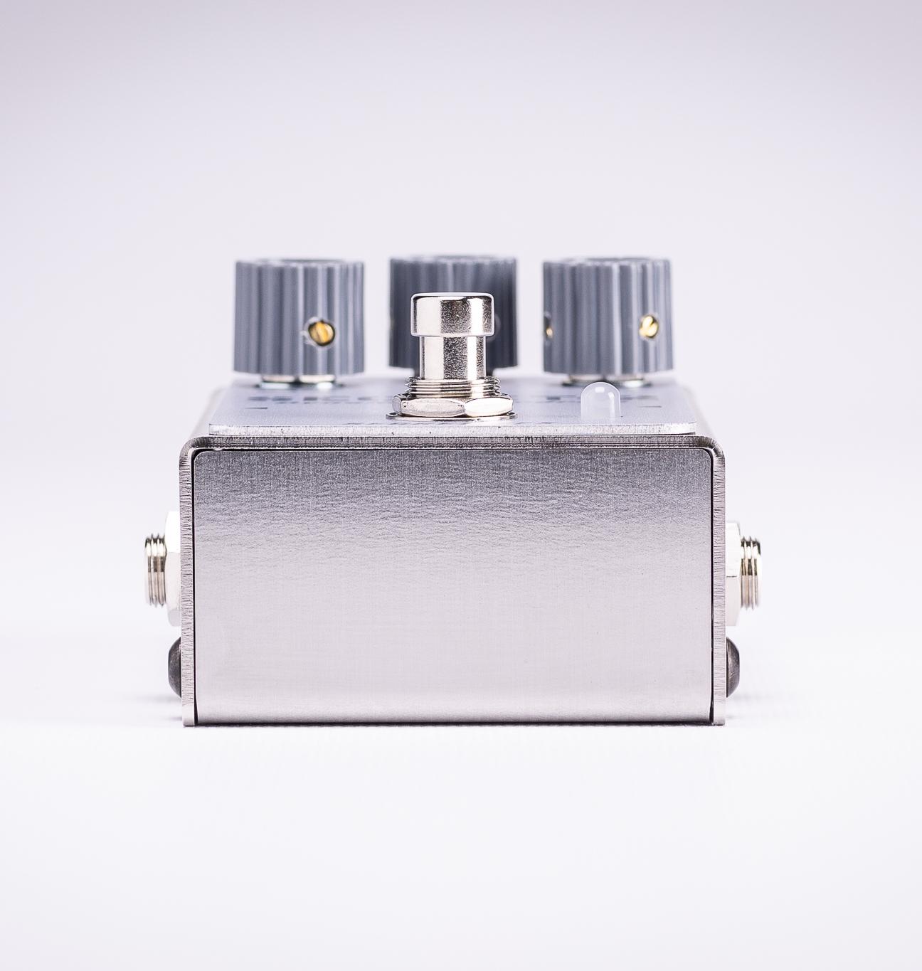 The gain control is very powerful and can deliver a wide range of colours. Start with a clean tone with the gain set to zero and turn it up to discover several degrees of saturation. Max out the control all the way up to 11 for “that extra push over the cliff” to experience a fuzz-like distortion.