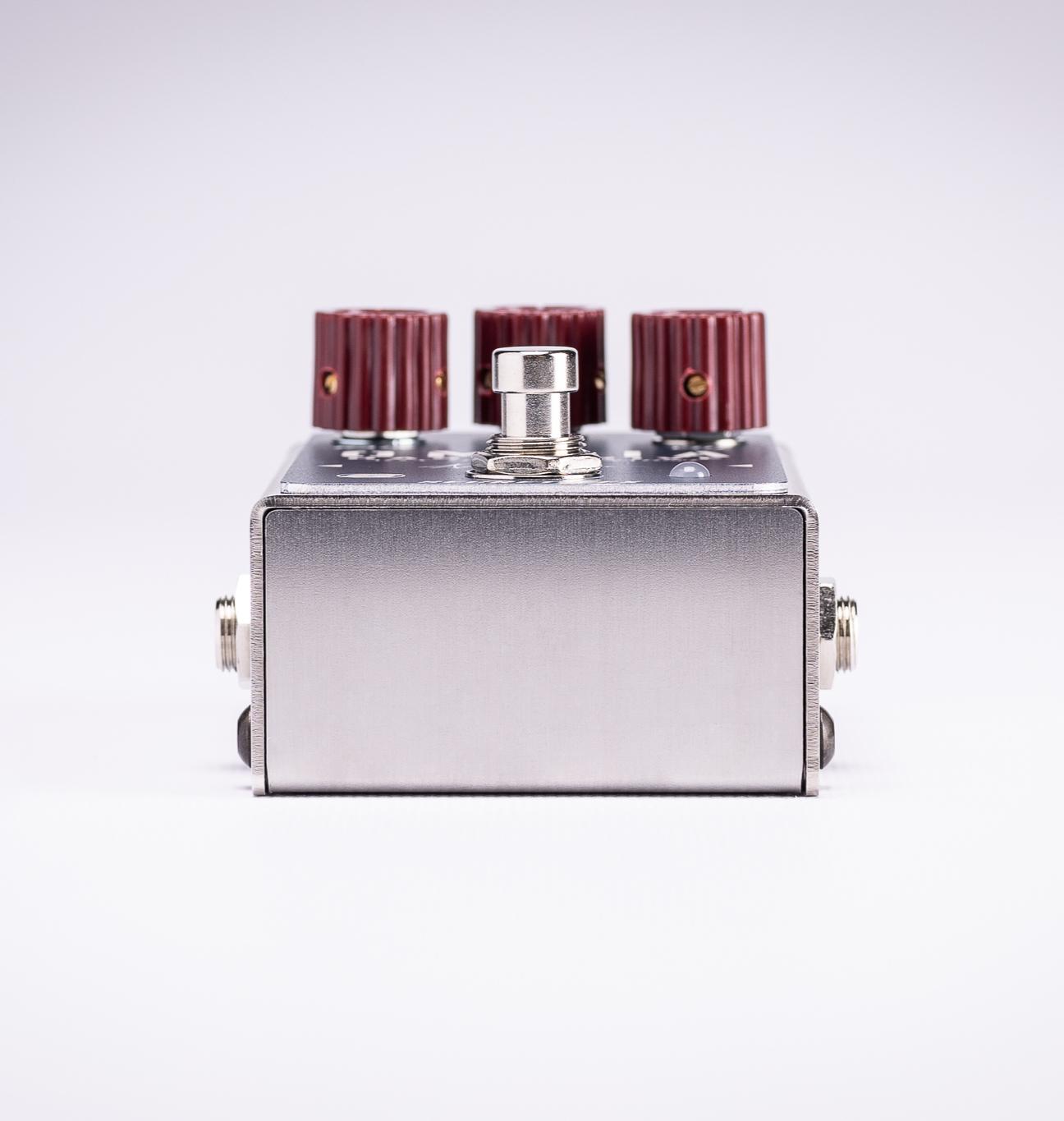 The gain control is very powerful and can deliver a wide range of colours. Start with a clean tone with the gain set to zero and turn it up to discover several degrees of saturation. Max out the control all the way up to 11 for “that extra push over the cliff” to experience a fuzz-like distortion.